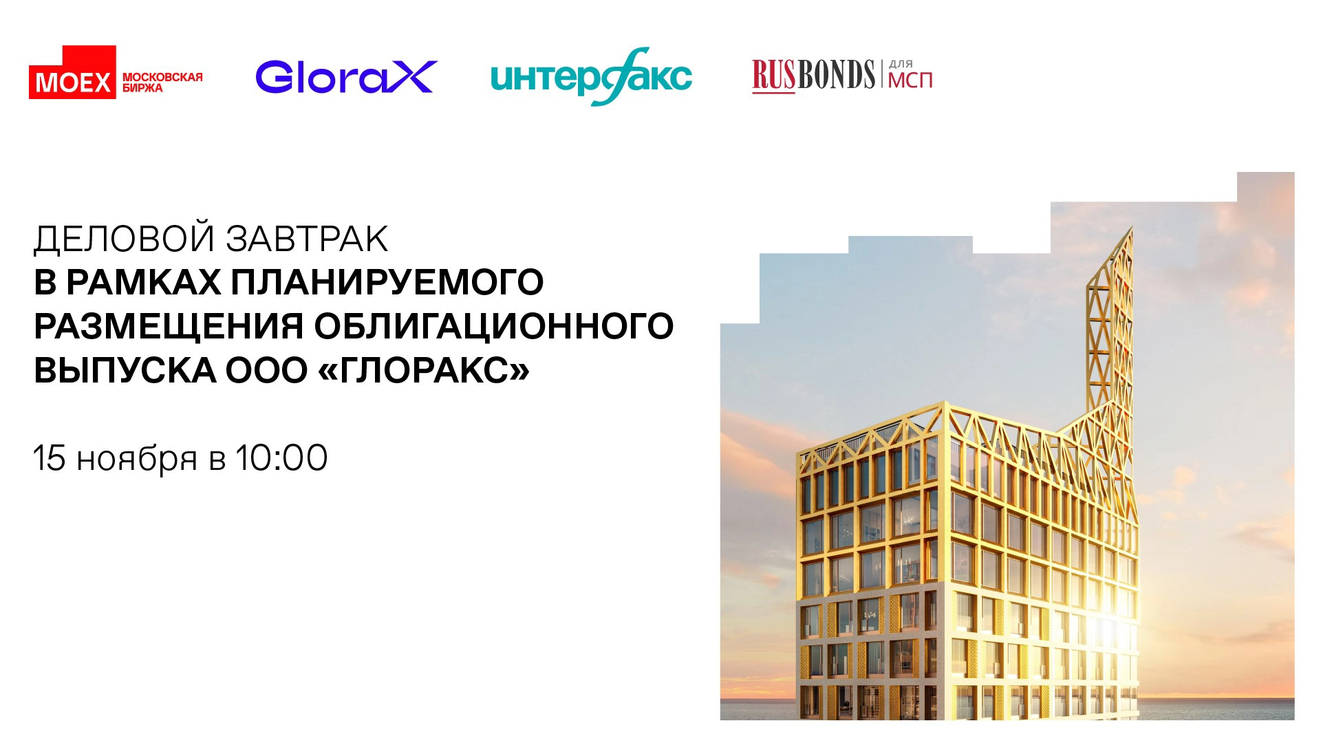 Московская биржа, Газпромбанк, RusBonds, Интерфакс и ООО "Глоракс" приглашают Вас на Деловой завтрак в рамках планируемого размещения облигационного выпуска ООО "ГЛОРАКС".
