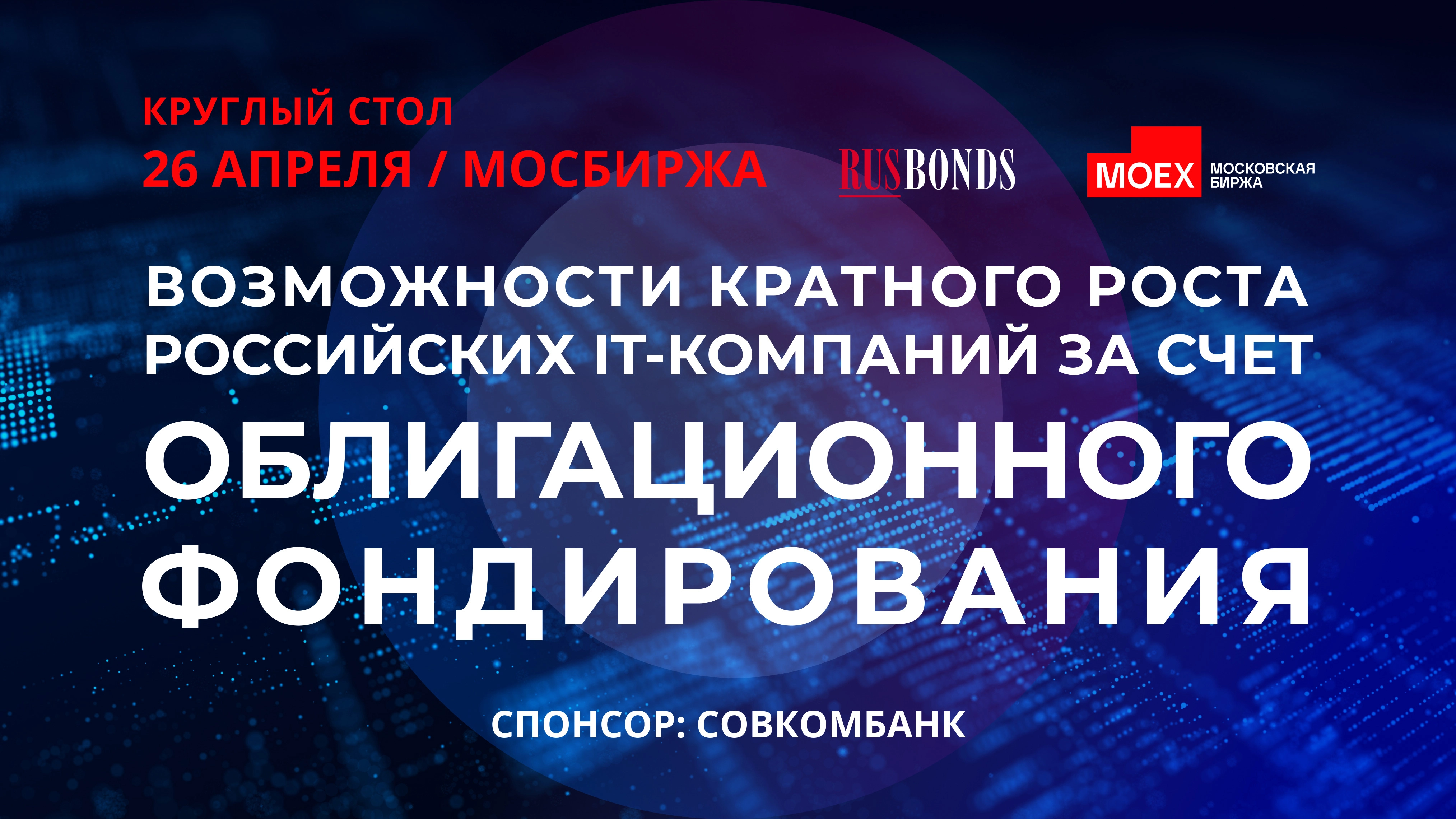 RusBonds совместно с Московской биржей 26 апреля в 15:00 МСК проведет круглый стол "Возможности кратного роста российских IT-компаний за счет облигационного фондирования".